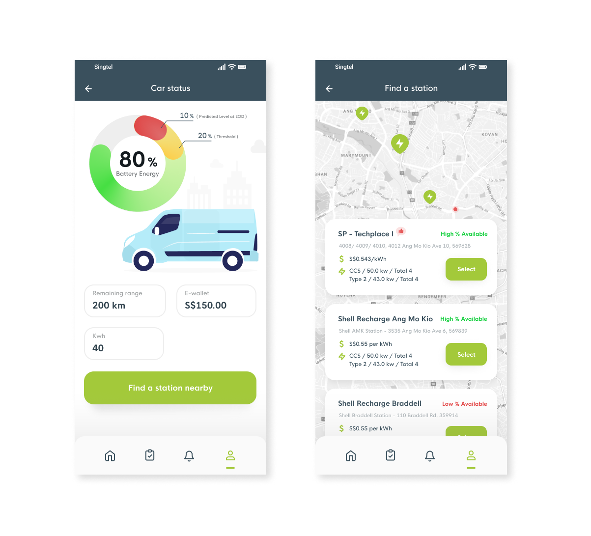 According to his assignments, ideally a map view and a list view of the recommended charging stations.